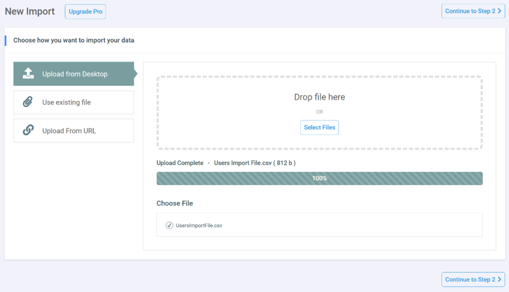 - Load your file and select Users as the import type.