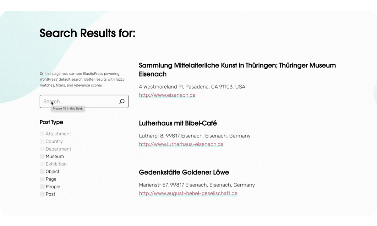 ElasticPress includes an extensive set of advanced search capabilities that significantly improve a site’s search experience. These include: