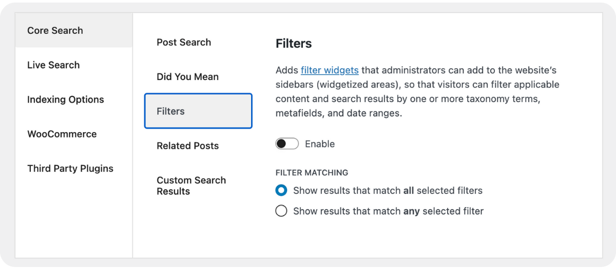 This feature is especially valuable for enterprise-level WordPress websites with large media and content databases that would otherwise be difficult for site visitors to filter through.
