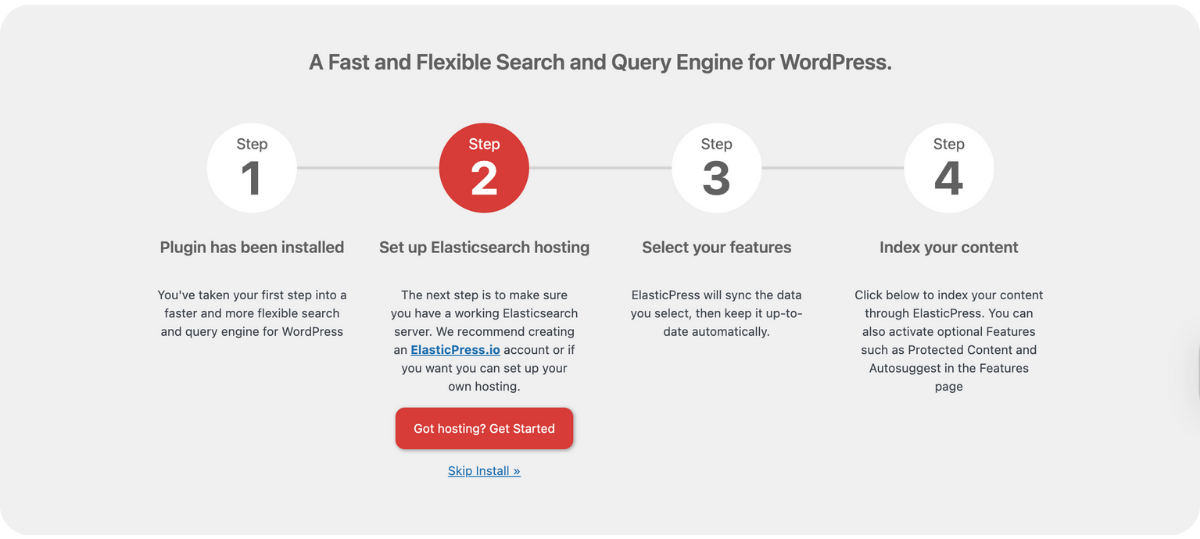 ElasticPress offers a managed search hosting service, built specifically for WordPress and WooCommerce, that integrates seamlessly with the plugin.