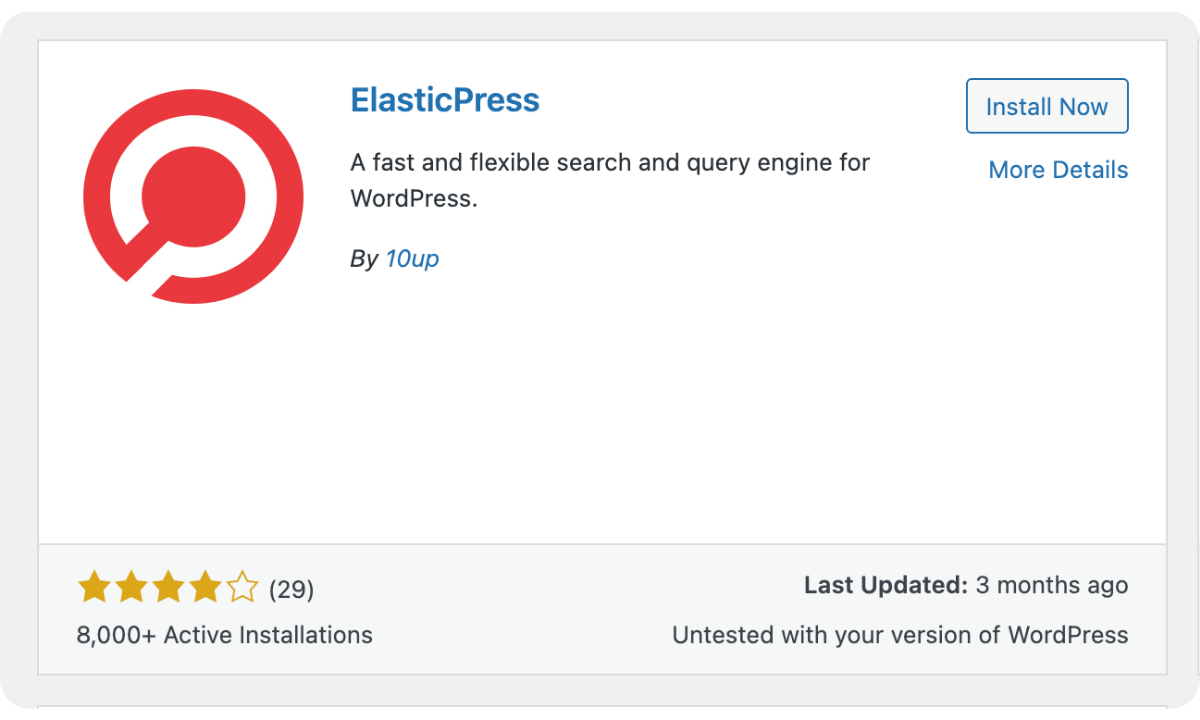 As previously mentioned, ElasticPress uses a hosted search solution to power faster WordPress searches. Therefore, a working server is required before installing the plugin.