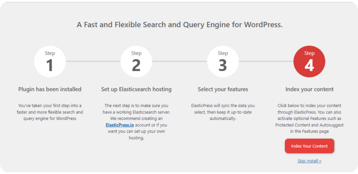 Once the server-side configuration is complete, the next step is to install the ElasticPress plugin.