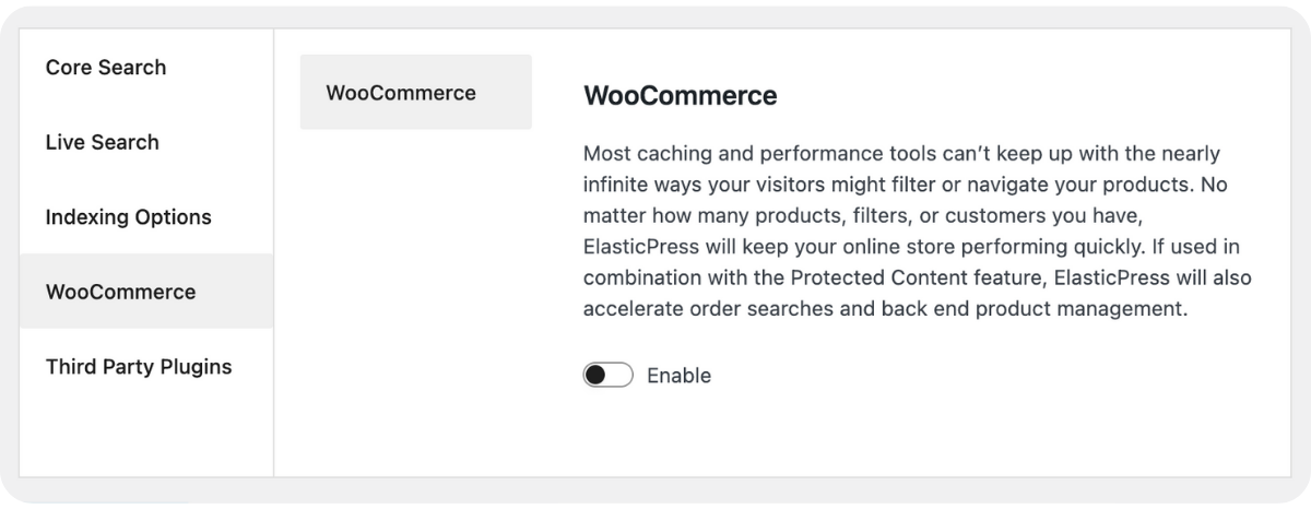 Designed for efficiency, even on robust WooCommerce stores, ElasticPress’s WooCommerce integration is another valuable feature.