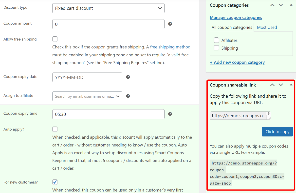- URL Coupons: This feature makes it incredibly easy for customers to claim a discount. They can simply click a unique URL, and the coupon is applied automatically without having to manually type in the code.