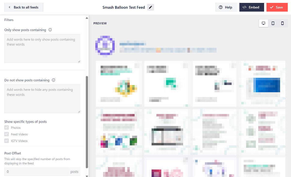 The plugin offers a visual editor to customize your feed. This means you can see your changes in real-time as you adjust settings from the sidebar.