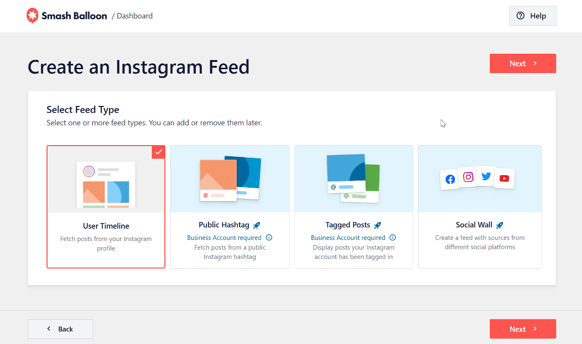 - User Timeline Feeds: You can use this feature to display posts directly from one or more specific Instagram accounts.
