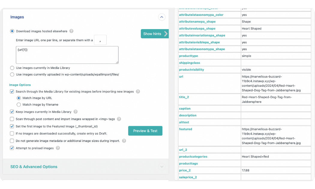 - Run the import and verify the imported data from your WooCommerce Products page.