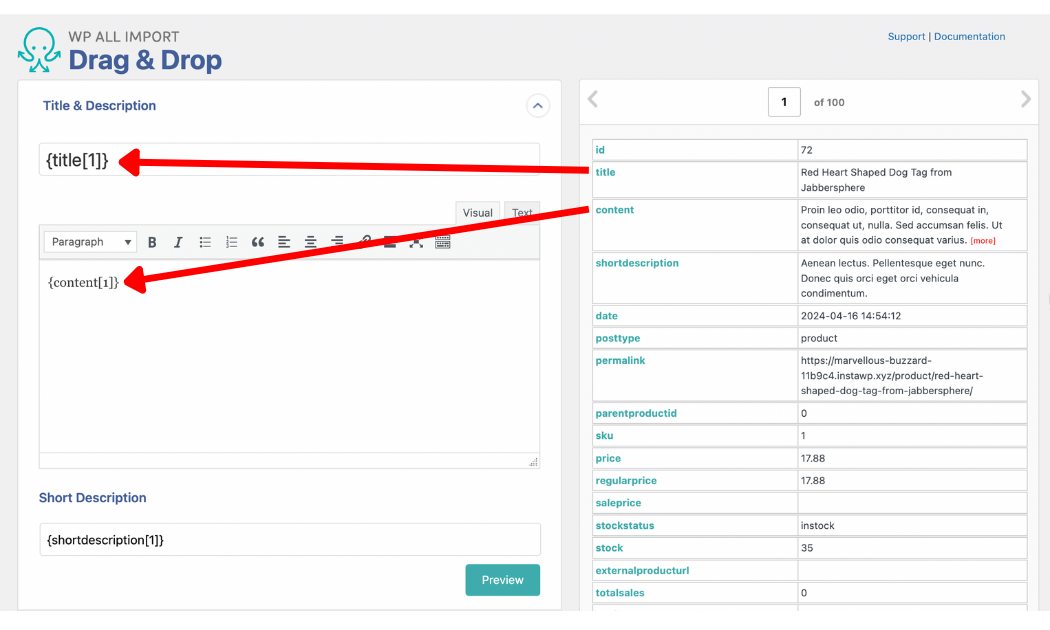 The most important step of the import process takes place on the Drag & Drop screen. WP All Import provides an intuitive drag-and-drop user interface that makes mapping easy, even for beginners.